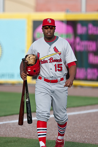 The signing of Diaz on Sunday piled more questions on an already packed infield. Though he is not able to compete in Cardinals spring training games because of work visa issues, it was reported he would get some action in minor league games soon. It was said that the infielder would begin in a high level of the St. Louis system, but that will be Double-A more than likely. In addition to Diaz, fans can expect many new faces on the infield. Scott Moore, Greg Miclat and Xavier Scruggs (pictured above) are slated to begin in Memphis. Moore has Major League experience with three different clubs, but spent the 2013 season in Triple-A with Tucson and Sacramento. He has experience at first base, third base and as a corner outfielder. Miclat was a Rule 5 pickup by St. Louis from Texas. The middle infielder spent the majority of 2013 with Triple-A Round Rock as a teammate to the above-mentioned Butler. Finally, Scruggs is a first baseman who has been in the organization for the last six years. He has shown terrific power (22 HR in 2012, 29 HR in 2013) through the years and actually holds the Springfield Cardinals home run record, a feat he achieved on the last day of the regular season in 2013. The downside to Scruggs is that he strikeouts a lot (177 times in 2013) and has not hit for a high average yet. The way he is hitting in spring training should be a cause for excitement though. Those new additions should team with the more familiar, namely Jermaine Curtis, Greg Garcia and Vance Albitz, to man the infield. If there was to be an odd man out, it would be Albitz. He was back-and-forth between Springfield and Memphis last season and could use the at-bats at Double-A.